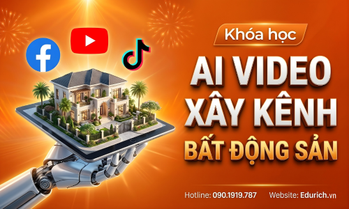 Khóa học AI Video Xây Kênh Bất Động Sản của EDURICH sẽ giúp bạn làm chủ công nghệ AI để sản xuất nội dung video BĐS chất lượng cao (Review nhà đất, giới thiệu dự án, kiến thức đầu tư) chỉ trong vài phút, giúp bạn xây dựng thương hiệu cá nhân và phủ sóng đa nền tảng (TikTok, Facebook Reels, YouTube Shorts).